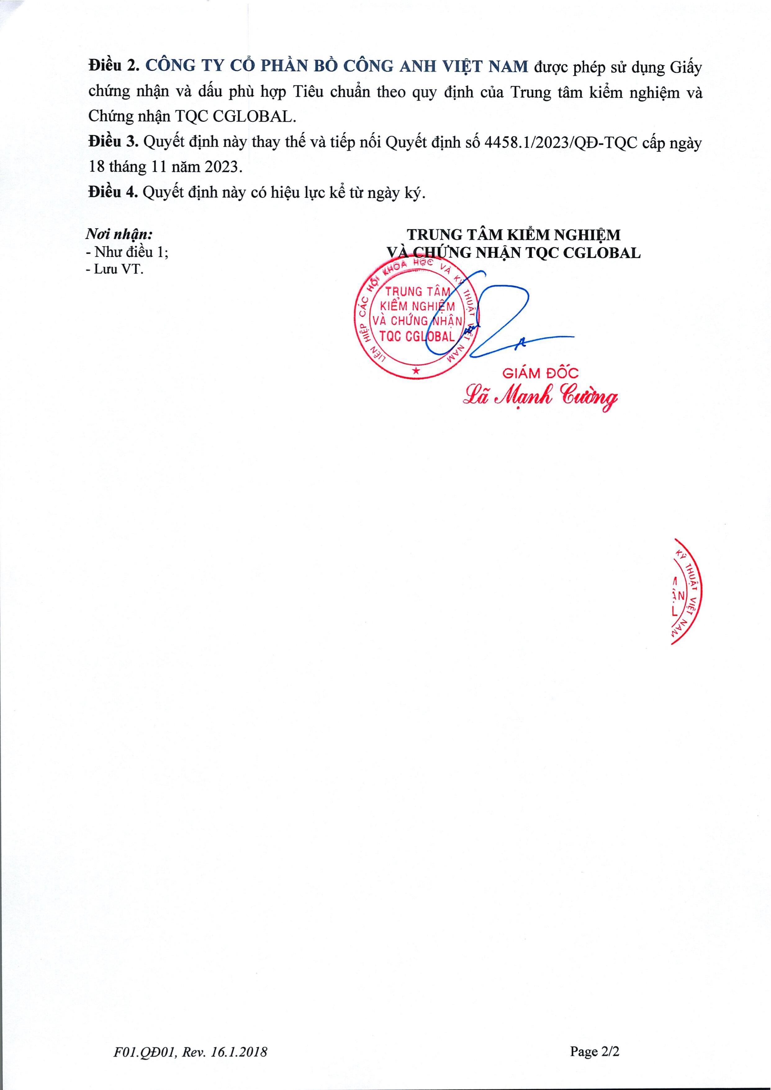 CÔNG TY CỔ PHẦN BỒ CÔNG ANH VIỆT NAM