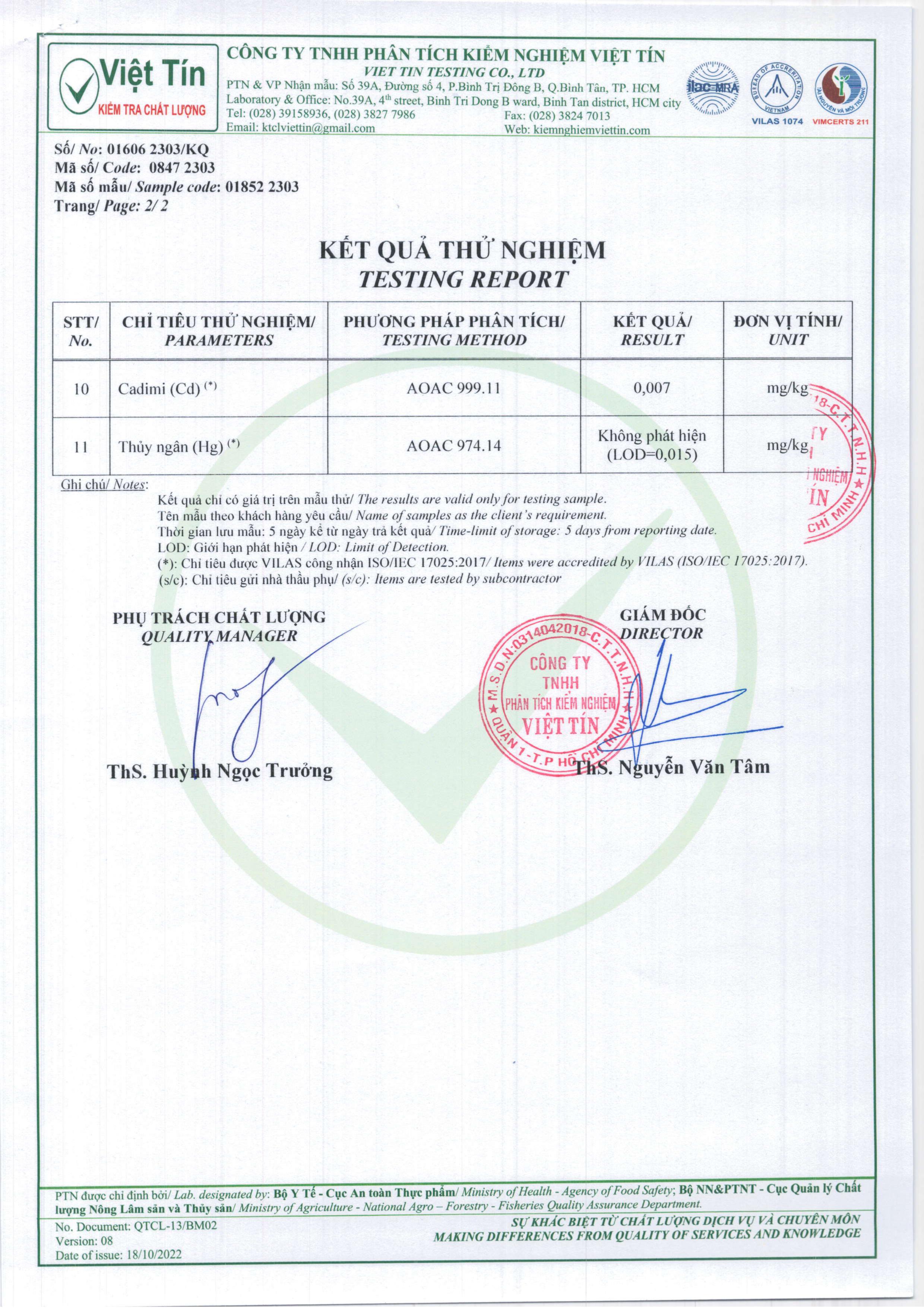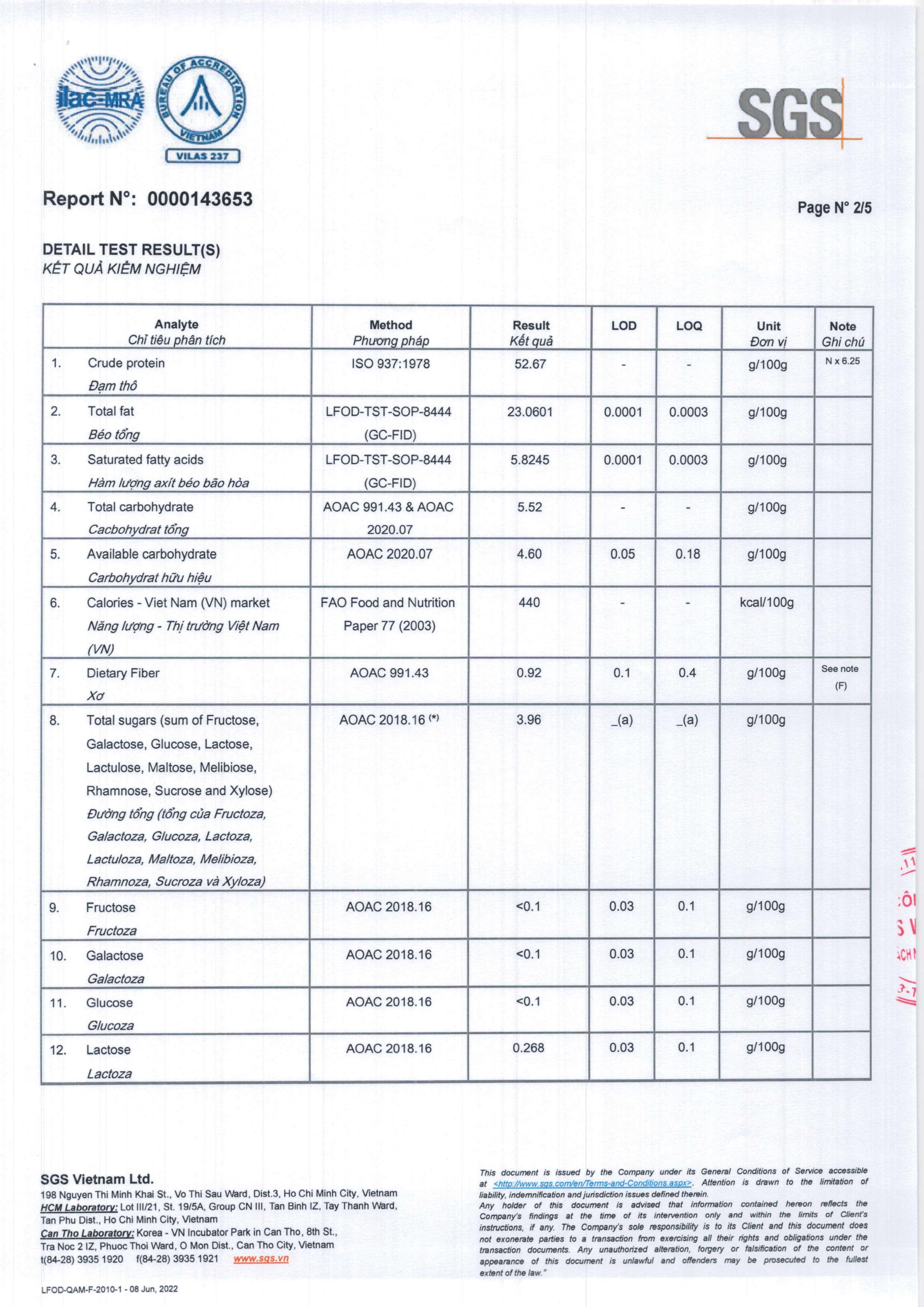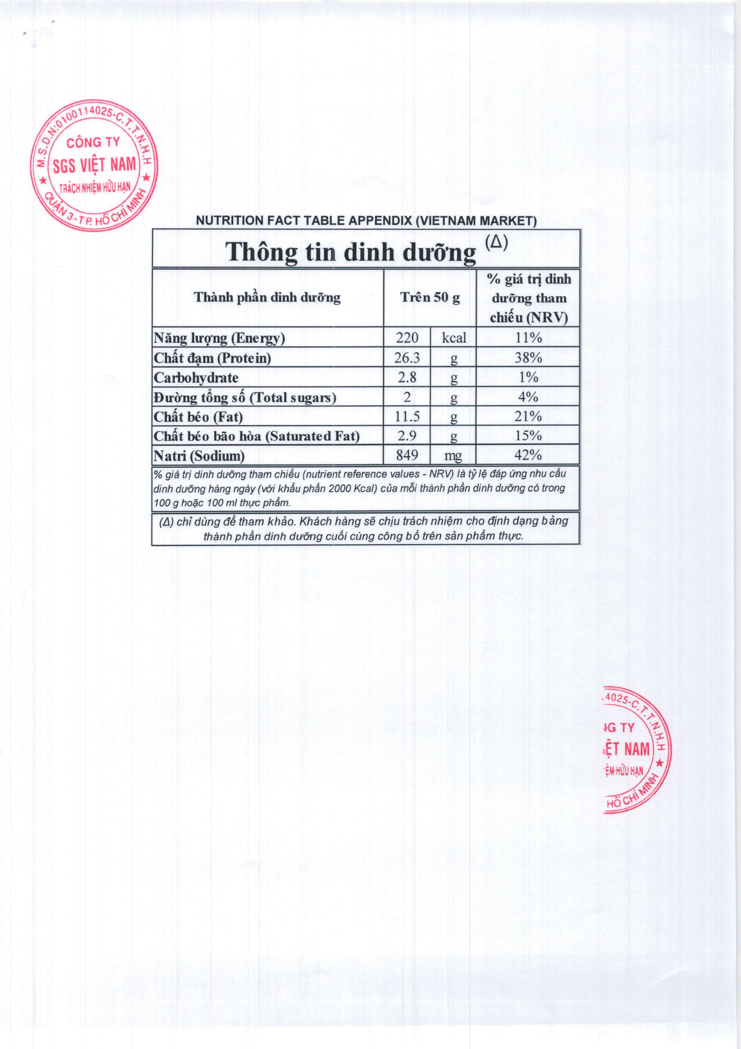 Sản phẩm chà bông cá hồi được thử nghiệm và đánh giá bởi Tập đoàn SGS chuyên thử nghiệm, giám định và chứng nhận