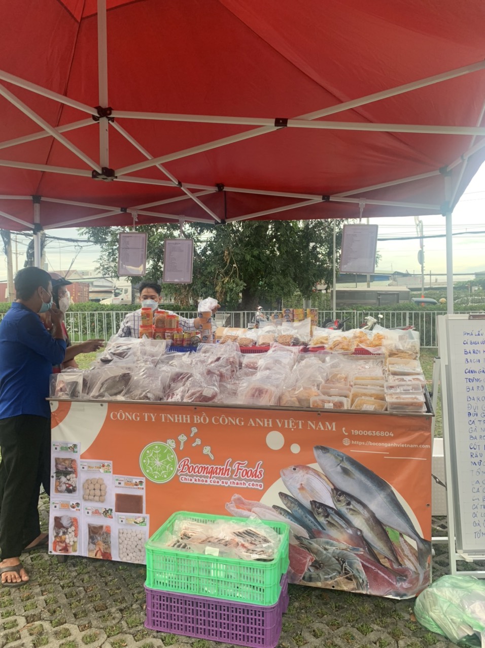 Tại điểm bán , Bồ Công Anh Foods đang có rất nhiều mặt hàng với giá bình ổn và các chương trình khuyến mãi hấp dẫn phục vụ nhu cầu mua sắm của người lao động tại KCX Linh Trunhg 1 & 2.