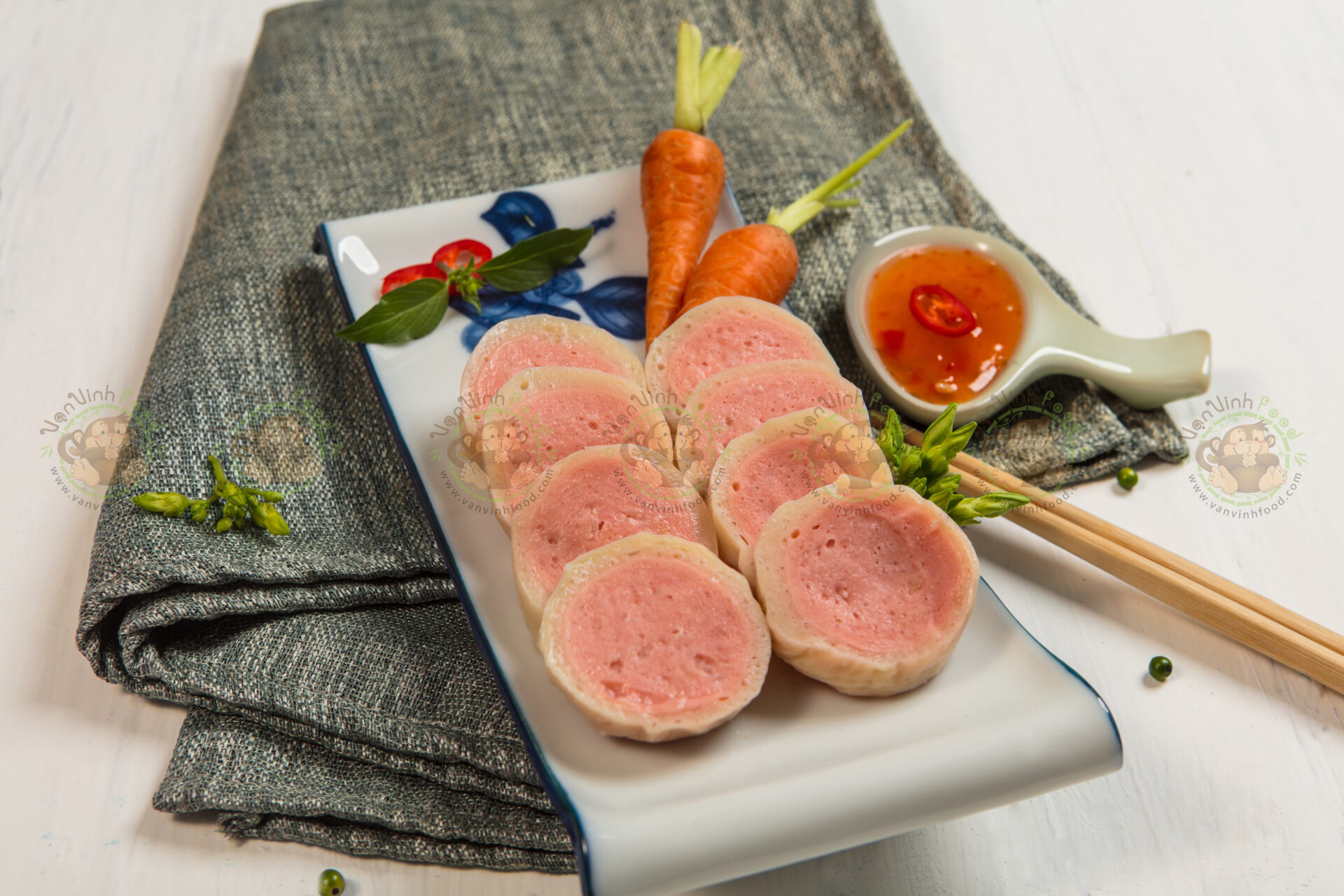 Thành phần: Thịt cá 40%,thịt gà 30%,thịt heo 10%,đường,muối I-ốt,bột năng,dầu đậu nành,tinh bột mì, chất điều vị (E621)