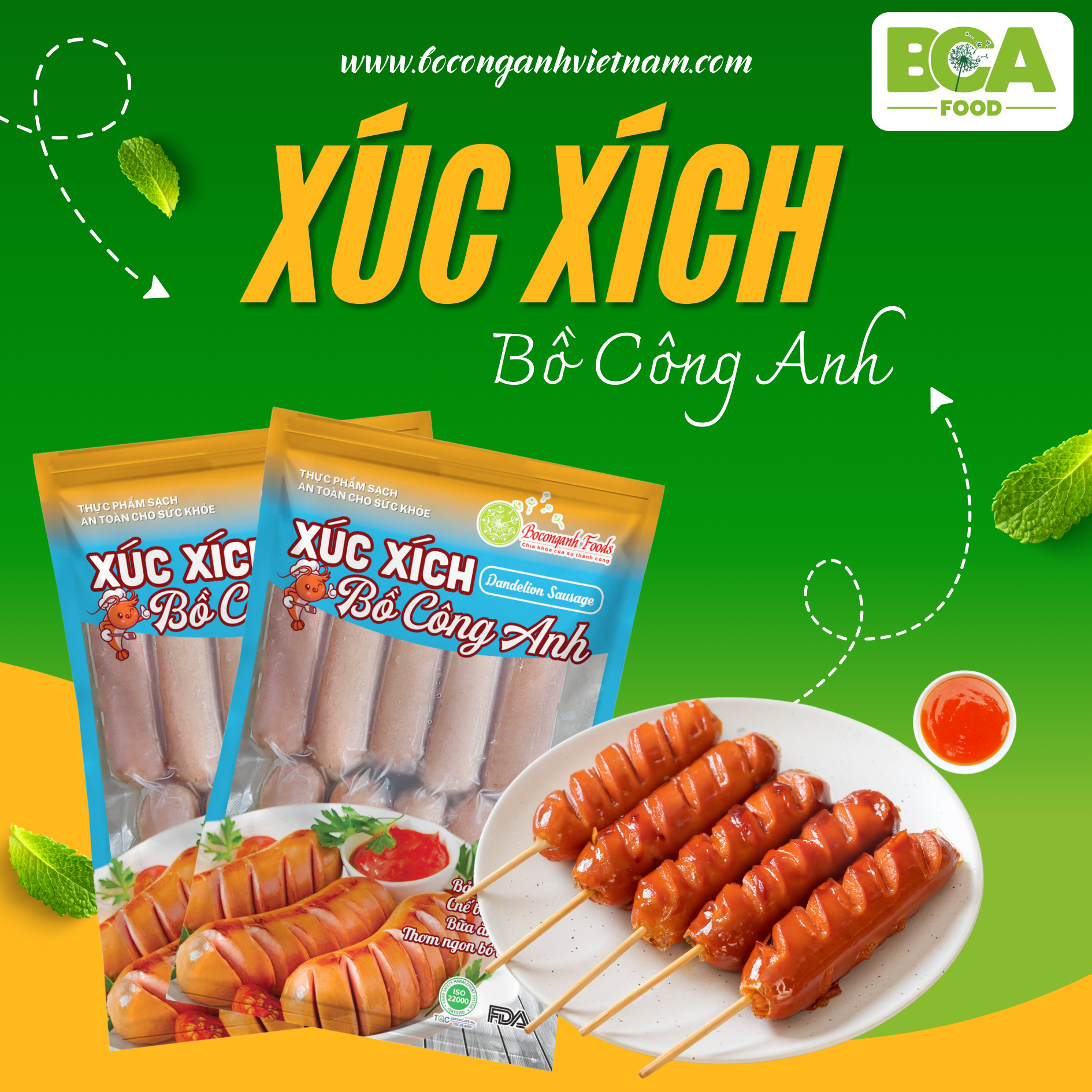 Kinh doanh xúc xích Bồ Công Anh - dễ bán, lợi nhuận ổn định, chất lượng cao. Với hương vị thơm ngon, an toàn đạt tiêu chuẩn HACCP, ISO 22000, FDA, chúng tôi hỗ trợ bạn từ A-Z để thành công!