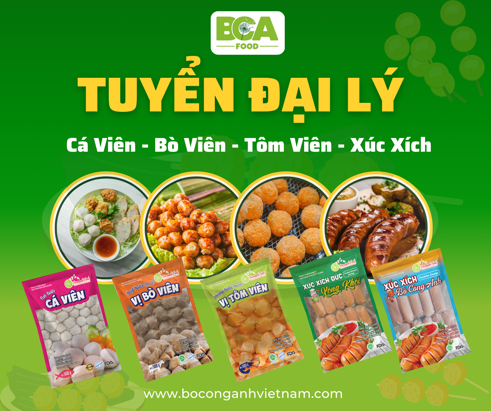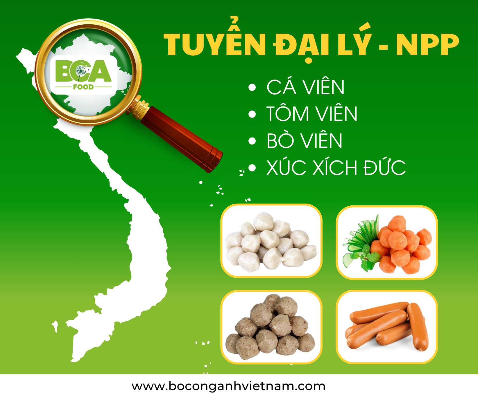 TUYỂN ĐẠI LÝ/ NPP MẶT HÀNG CÁ VIÊN - TÔM VIÊN - BÒ VIÊN - XÚC XÍCH ĐỨC CÙNG BCA FOOD - HÀNG NHẬP TẬN NHÀ MÁY SẢN XUẤT