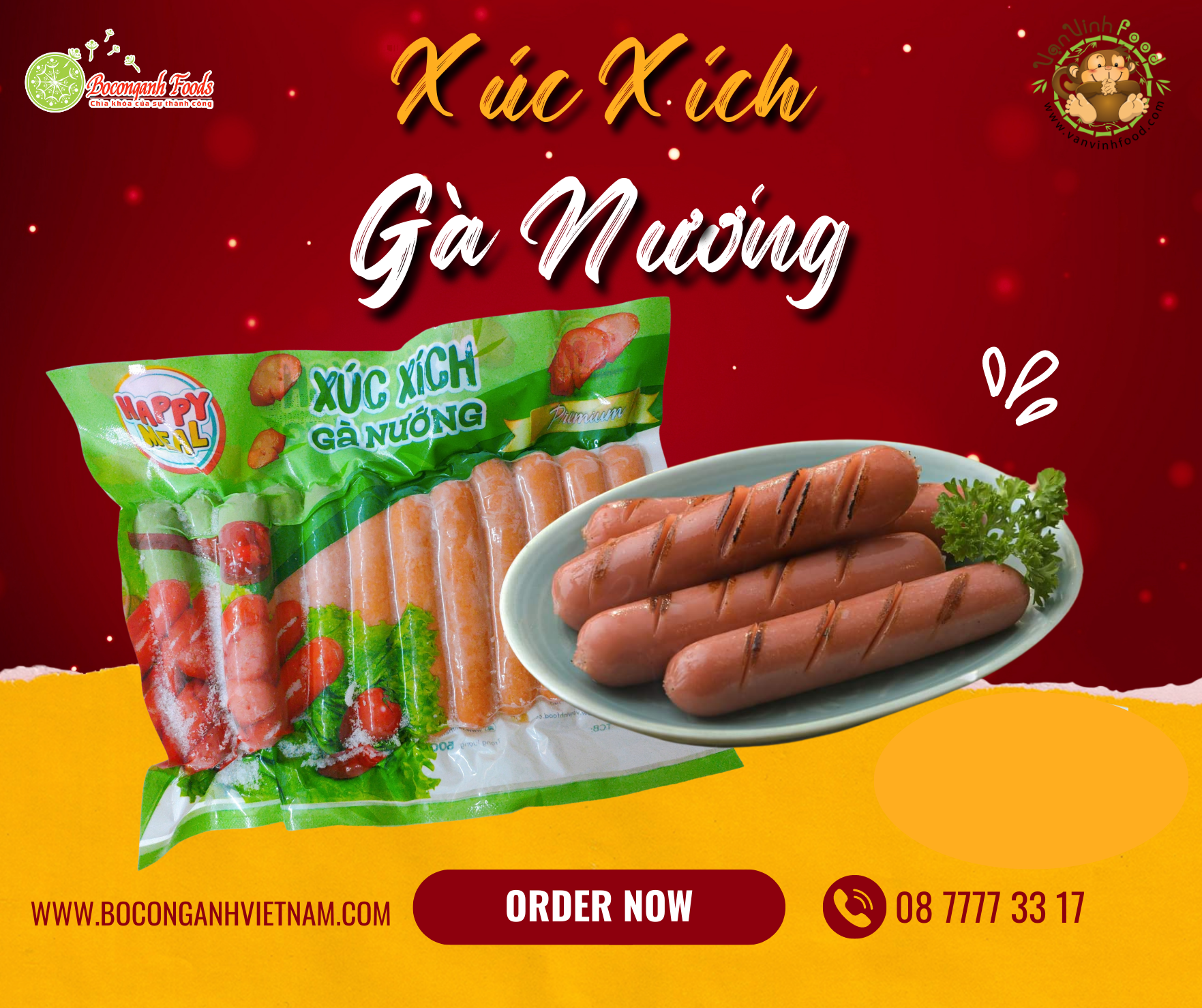 Được làm từ thịt gà và thịt heo tươi ngon, giàu dinh dưỡng. Xúc xích gà nướng là món ăn lạ miệng nhưng rất được ưa chuộng, đặc biệt là trẻ nhỏ.